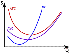 To the right we show the result of an increase in Fixed Costs. MC and AVC are both purely variable costs, so neither of these curves will shift.