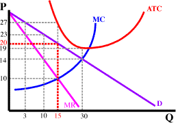 Any profit maximizing firm should choose the price/output combination where marginal revenue = marginal cost. As shown to the right (red dashed lines) this occurs at a price of 20 and a quantity of 15. Any other price/output combination will cause lower profits (greater losses in this case).