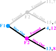Firm 2 has promised that, if it is faced with this outcome it will choose to Stay Out. Can Firm 2 be trusted to accept a payoff of 8 when it has the possibility of earning a payoff of 12? Once it has convinced Firm 1 to Stay Out why wouldn't it go ahead and Expand? The answer is, it probably would. In this case its difficult to imagine that Firm 1 could be convinced to trust Firm 2. Given the payoffs, the promise by Firm 2 to Stay Out isn't credible.