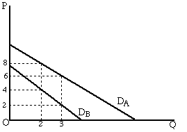 The next 3 questions concern a market for which the demand function is given by Q = 90 - 10P. You may find it helpful to sketch graphs.